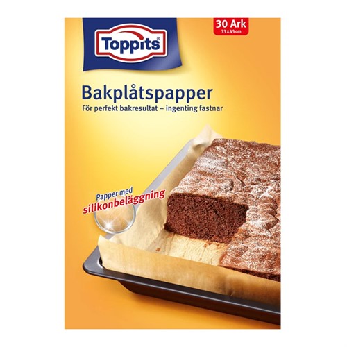 Toppits® Bakplåtspapper med non-stick i ark, minskar kontaktytan vid bakning och därmed risken för att bakverket fastnar. Den dubbelsidisilikonbeläggning förhindrar också att bakplåtspapperet blir flottigt.