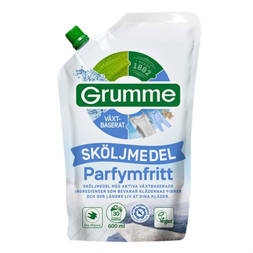 Ett parfymfritt sköljmedel speciellt framtagen för känslig hud och dig med allergi. Växtbaserat och veganmärkt. Det kommer i en klimatsmart förpackning och är miljömärkt med Bra miljöval.