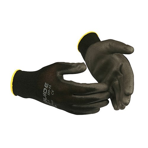 En smidig arbetshandske i nylon som genom sin konstruktion är mycket luftig och sval. Sömlöst stickad för extra bra fingertoppskänsla. PU-doppningen i innerhand ger bra grepp och mekaniskt skydd. Färgmarkeringen vid krage anger storlek. Tillverkad av silikonfria material. Lämplig vid monterings- och precisionsarbeten där extra bra smidighet och fingertoppskänsla krävs. Skyddar såväl användare som produkt.
