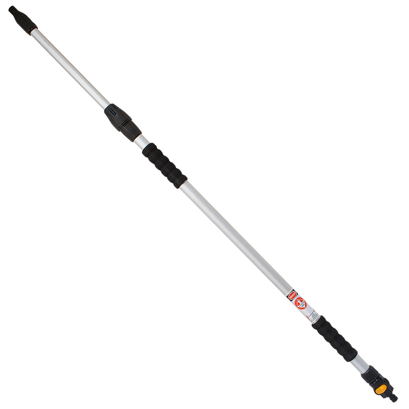 Spolskaft med teleskopfunktion 1–1,7 meter. Standard slangkoppling och avstängningsventil.