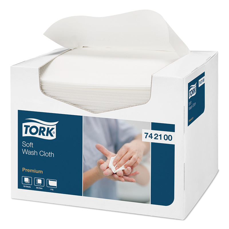 Förbättra patientvården med den starka och mjuka Tork Mjuk Tvättlapp som passar perfekt när man tvättar patienten med vatten och en mild tvål.