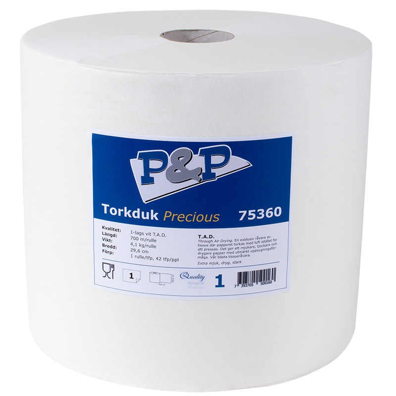 T.A.D. Through Air Drying. En exklusiv råvara av tissue där papperet torkas med luft istället för att pressas. Det ger ett mjukare, tjockare och drygare papper med utmärkt uppsugningsförmåga.
