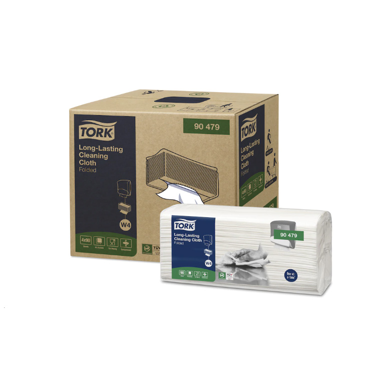 Absorberande och hållbar och kan därför användas vid upprepade tillfällen utan att rivas sönder. Kan användas i Tork Dispenser Vikta dukar för top-pak som matar ut en duk i taget för att minska förbrukning och avfall.