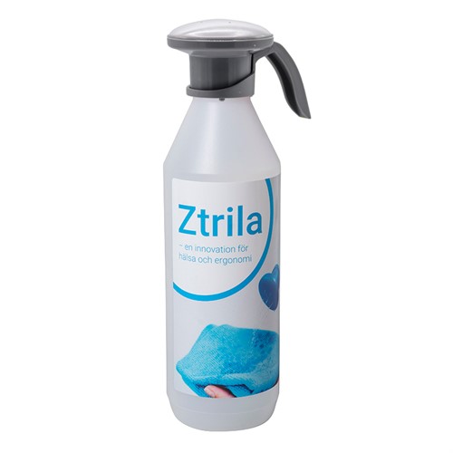Ztrila är ett nyutvecklat munstycke som helt och hållet eliminerar hälsofarliga sprayångor vid dosering av rengöringsmedel. Tack vare sin smarta utformning minskar Ztrila också risken för muskelutmattning och värk i armar, händer och fingrar.