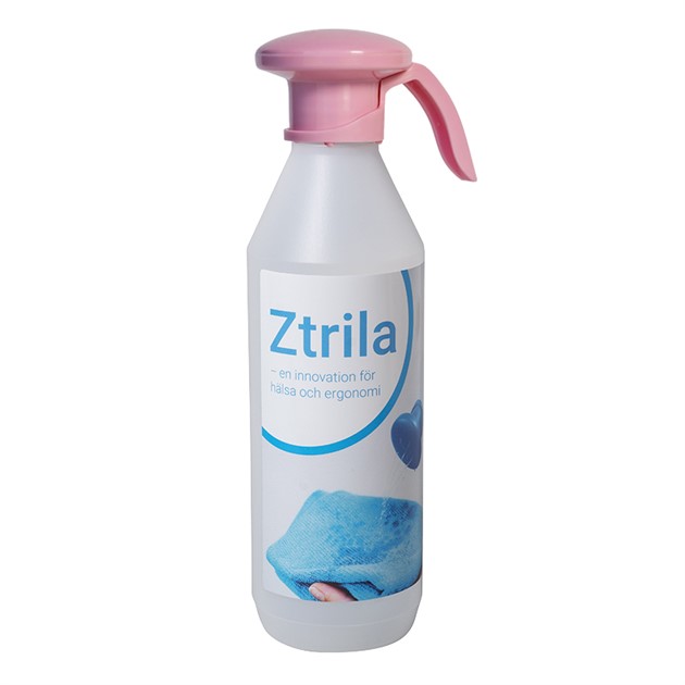 Ztrila är ett nyutvecklat munstycke som helt och hållet eliminerar hälsofarliga sprayångor vid dosering av rengöringsmedel. Tack vare sin smarta utformning minskar Ztrila också risken för muskelutmattning och värk i armar, händer och fingrar.